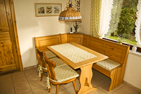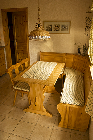 Die rustikale Ecksitzbank rundet das gemütliche Gesamtbild ab und