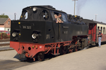 Mit der Dampfeisenbahn „Molli“ geht es mehrmals täglich auf schmaler Spur mit nostalgischem